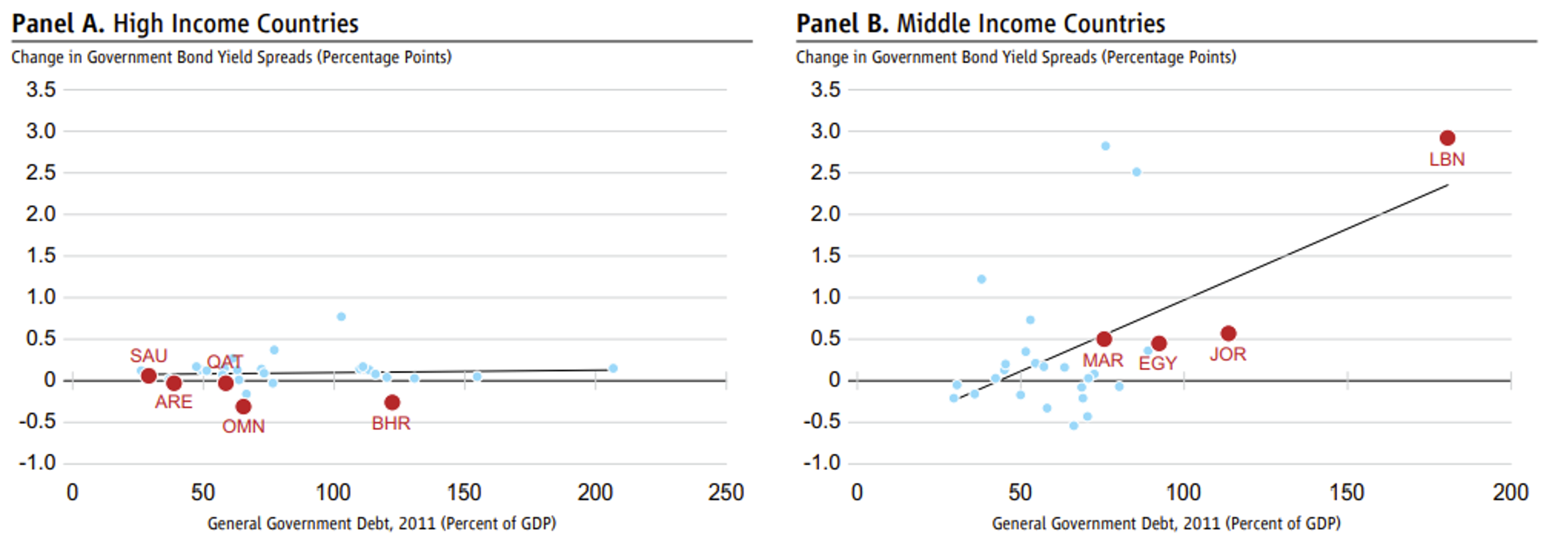 World Bank data shows bond spreads rising for developing countries with elevated debt.