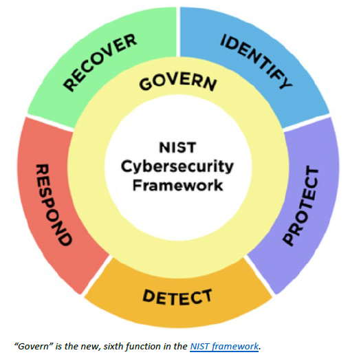 To the five main functions, or pillars, in the CSF – identify, protect, detect, respond and recover – NIST added “the govern function, which covers how an organization can make and execute its own internal decisions to support its cybersecurity strategy. It emphasizes that cybersecurity is a major source of enterprise risk, ranking alongside legal, financial and other risks as considerations for senior leadership.”