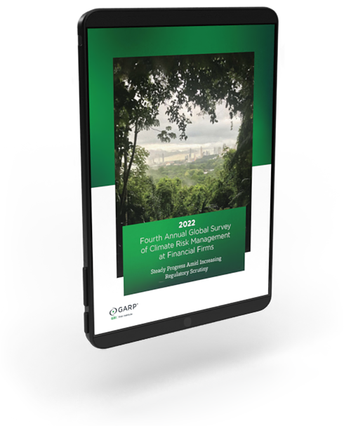 GARP Risk Institute recently completed its fourth annual Global Survey of Climate Risk Management at Financial Firms. Surveying 62 top firms with a collective USD 43 trillion of balance sheet assets,GARP Risk Institute's comprehensive 2022 report offers updated, independent insights into climate risk management across the financial system today, along with exposing the challenges companies are facing in incorporating climate risk into business-as-usual risk management.